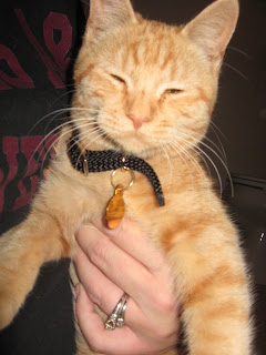 In the cat room, all the cats were flipping out. Many of them were kittens wrestling with one another. Others were older and were crazily pressing against the doors of their kennels trying to get a scratch behind the ear. Tucked away in the corner was a a big mellow orange cat who was just sitting there looking at us like whatever. I immediately fell in love. At only eight months old, he's young enough to be playful, however he's big enough to not get squished when loved on by the kids. Meet our new cat, Milo: